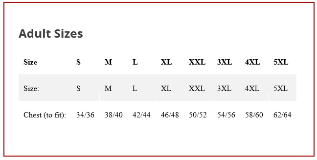 | S | M | L | XL | 2XL | 3XL | 4XL | 5XL | |