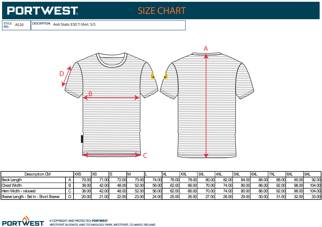 Portwest AS20 Anti-Static ESD T-Shirt S/S AS20