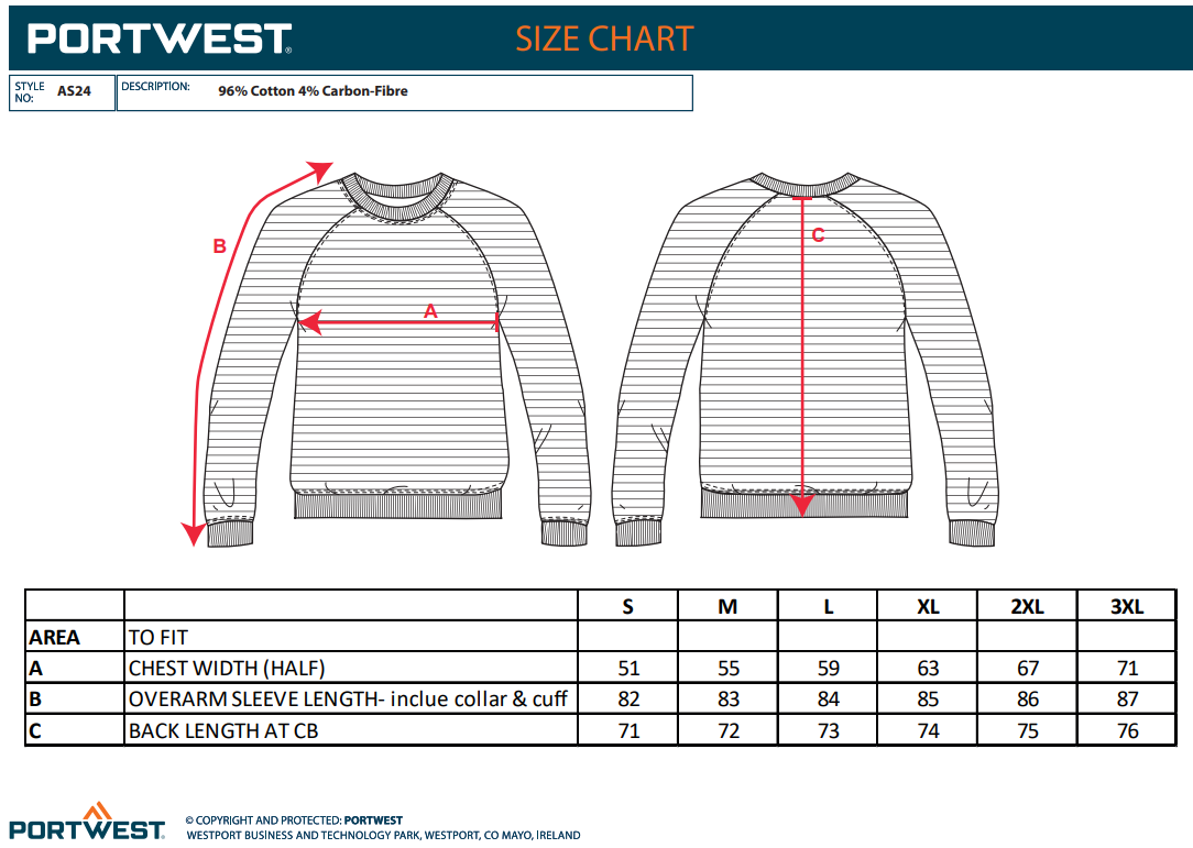 Portwest AS24 Anti-Static ESD Sweatshirt AS24