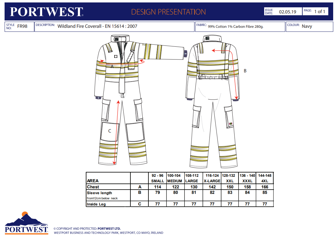 Portwest Wildland Fire Coverall FR98