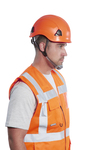 Designed to be specially used when working at heights thanks to the peakless helmet shell design which allows for an unrestricted upward vision. Light and comfortable, this helmet is compact featuring an unvented ABS shell, textile comfort harness 6 points and wheel ratchet adjustment, size 52-63cm. Improved technical sweatband and 4-point chin strap (Y style) with soft rubber chin protector included.
