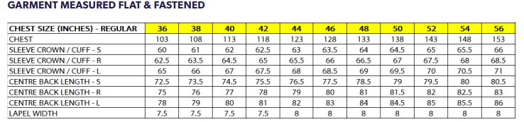 Single Breasted, 2 button front, side vents, 3 patch pockets, 3 interior pockets, fully lined, 2 button cuff, classic fit