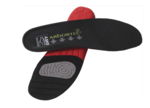 A shock absorbing double density open cell foam base is laminated with a breathable fabric to wick away moisture. Airflow grooves along the base of the insole help to increase airflow and shock absorbing pods on the heel and toe areas alleviate pressure and reduce fatigue.