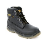 Full grain black leather upper. Waterproof and breathable membrane inner lining and PU comfort insole for dry, comfotable all day wear. The padded tongue and collar provide increased comfort. Steel toe cap and steel midsole protection. PU/TPU outsole. A high quality waterproof safety boot from DEWALT.