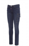 Women’s multi-pocket jeans with five pockets, metal zip fastening with button, belt loops at waist, one internally reinforced large side pocket with LOCK SYSTEM, one zip pocket, one tape measure pocket, one smartphone pocket, one hammer holder, one pen and cutter holder, stone-washed treatment, worn and faded effect. Straight leg, contrasting heavy duty stitching, triple seams inside leg. Fabric weight: 10.50 oz/yd².