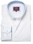 Tailored fit, long sleeve, button down collar, locker loop, contrast collar.