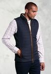Water resistant finish, recycled outer fabric, faux suede binding, 100g recycled wadding, 2 outer side pockets, 1 inside zip pocket, 2 drawstring toggles at side seams.
